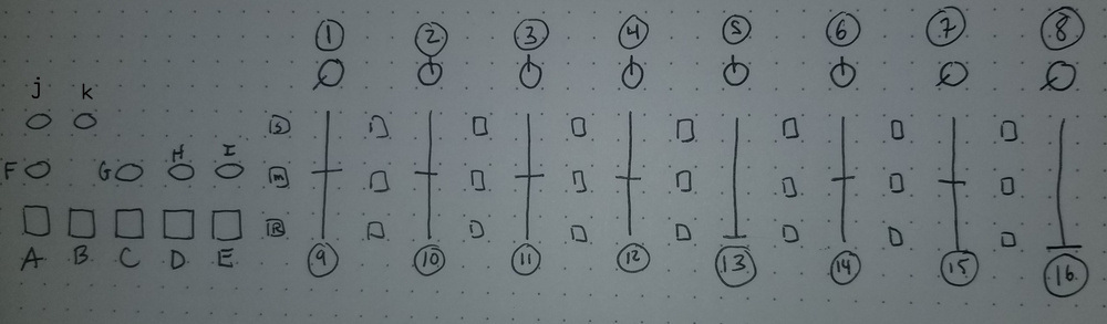 Convolutional Chaos offers an alternative approach to video feedback. Each set of vertically aligned sliders and knobs (1,9) through (8,16) controls the weight and distance of a convolutional kernel. Distance is unipolar and relative to the kernel position. Weight is bipolar so try using various values of positive and negative weights to get some crazy biz happening!